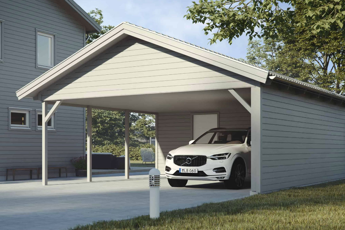 Vi erbjuder inte några fasta modeller av carportar. Vi låter dig skapa din carport själv och gör byggsatser av idéerna. En carport kan byggas i många varianter. Enkel, dubbel med förråd, garageplats vid sidan av eller innanför carportdelen. Du kan få carport med plats för flera bilar genom att göra en bred carport eller att lägga inkörning från långsidan.