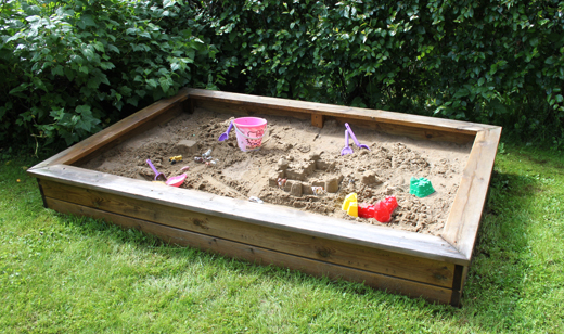 I en större sandlåda finns det plats för både lek, kompisar och alla prylar.