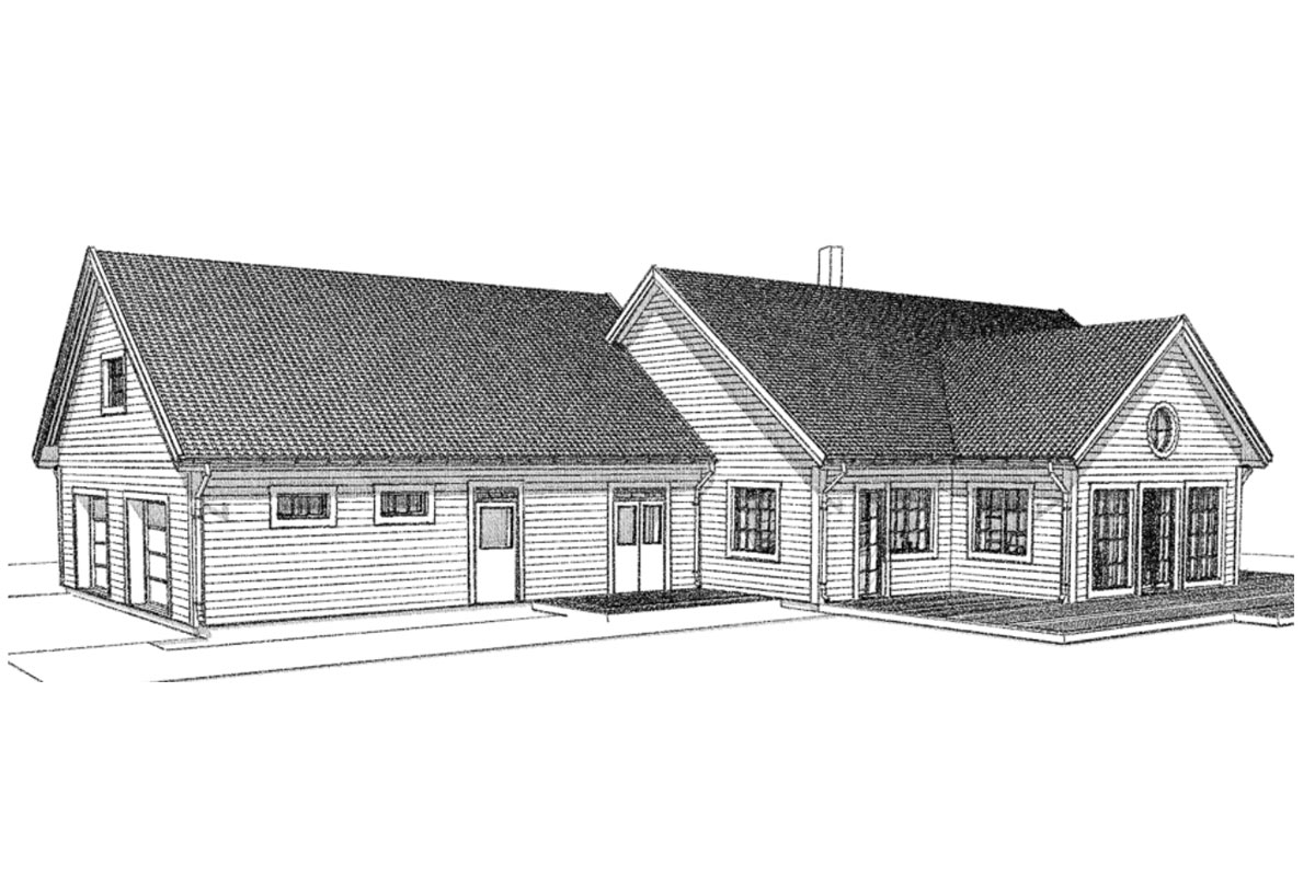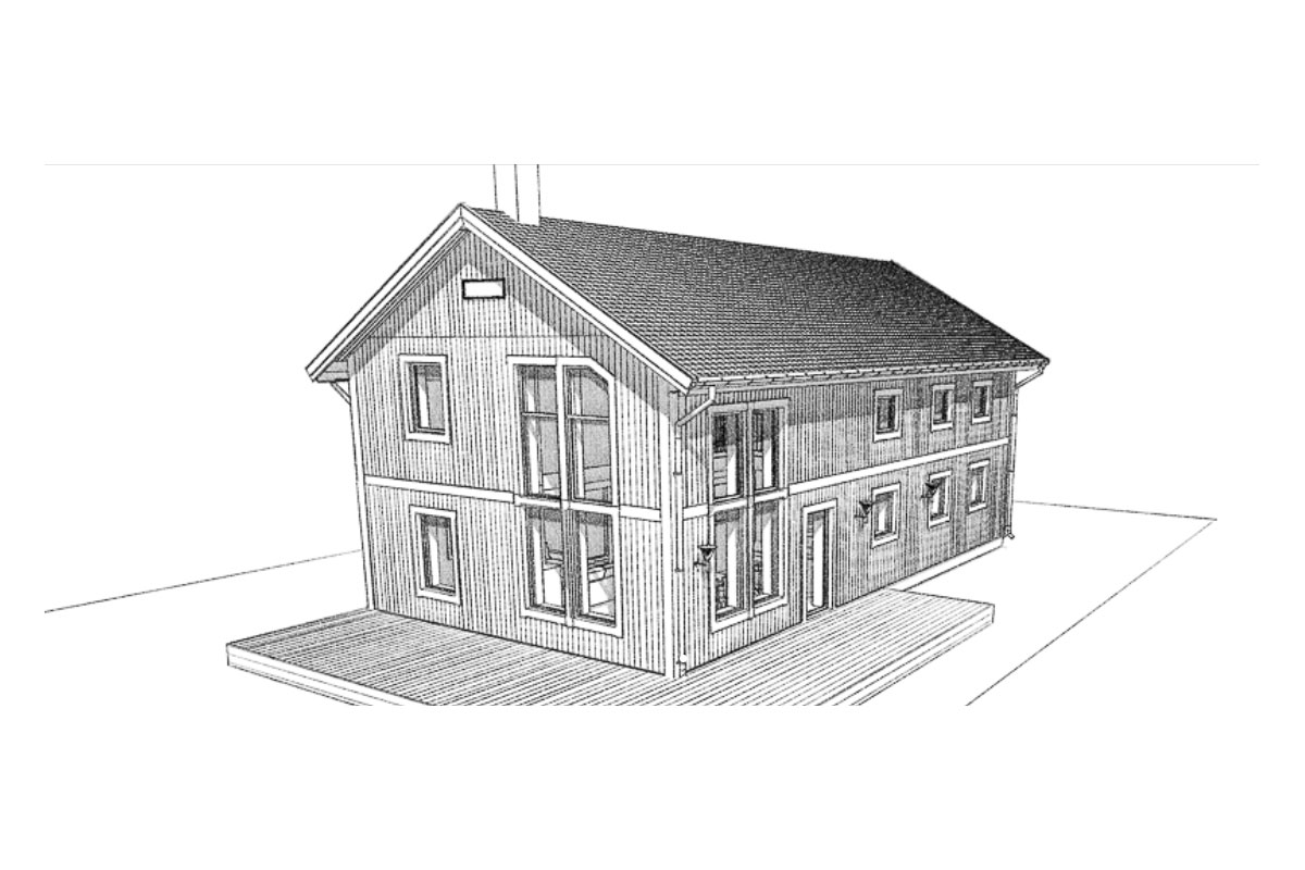 Villa Tranö är ett trevligt vinkelhus med öppna umgängesytor i den ena husdelen. Vi har ritat det med tanke på att använda det som ett fritidshus, fast med en hög villastandard. Sovrummen nere fungerar som gästrum då gäster är på besök. Övervåningen har plats för det större sovrummet, ett mindre sovrum samt ett mindre badrum.